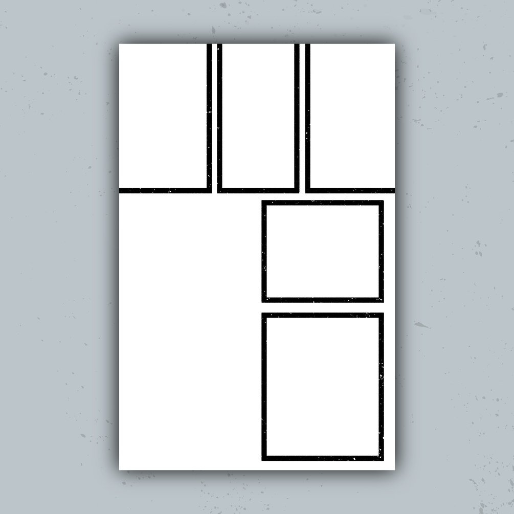 11x17 sized panel templates. Easily import them into Photoshop, Clip Studio, Procreate, or any illustration software you prefer! Set the template of choice as the top layer and set the blending mode to Multiply. Draw and color on layers below! Easy-peeeeezy